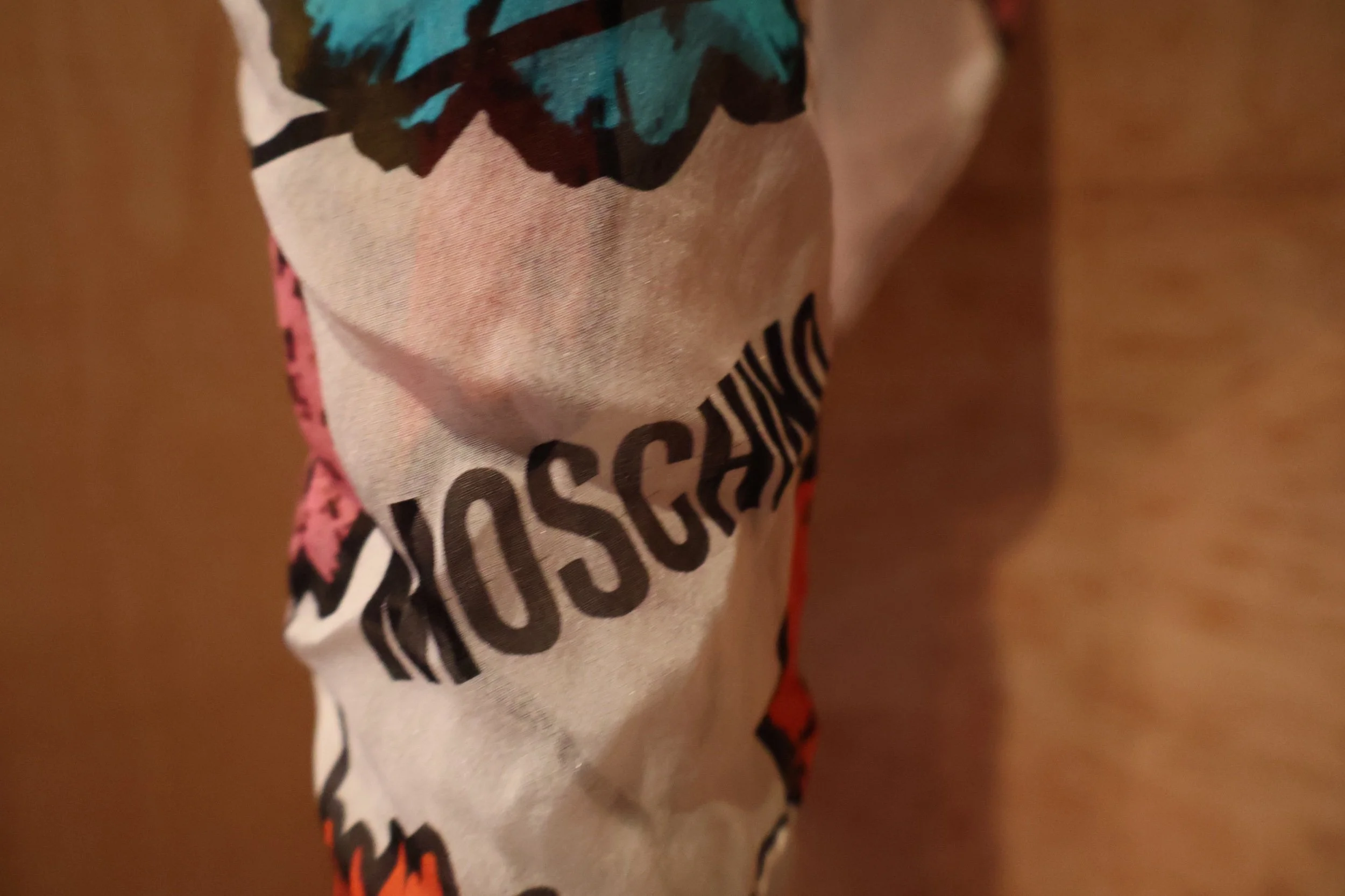 100% Silk Moschino Pop Art White Scarf
