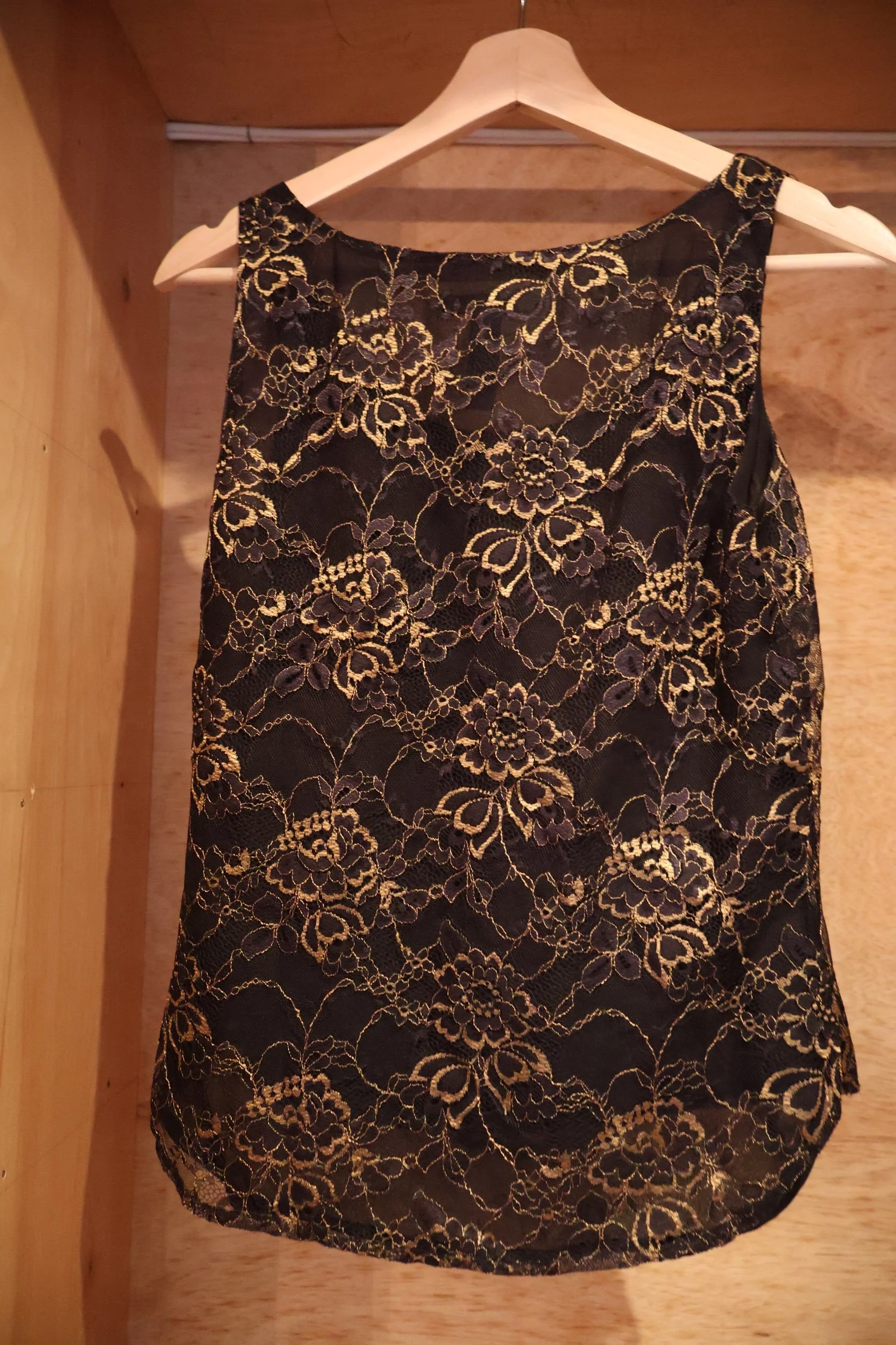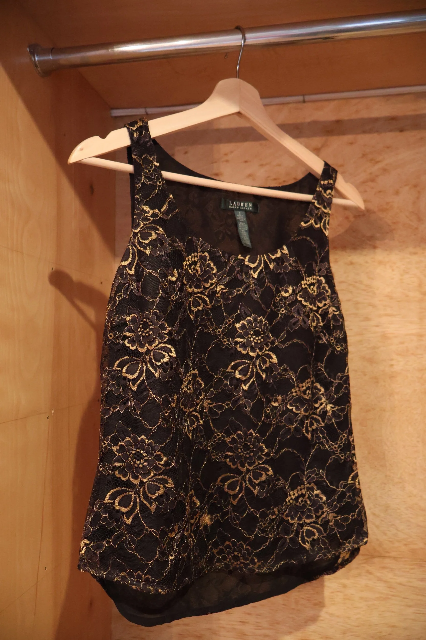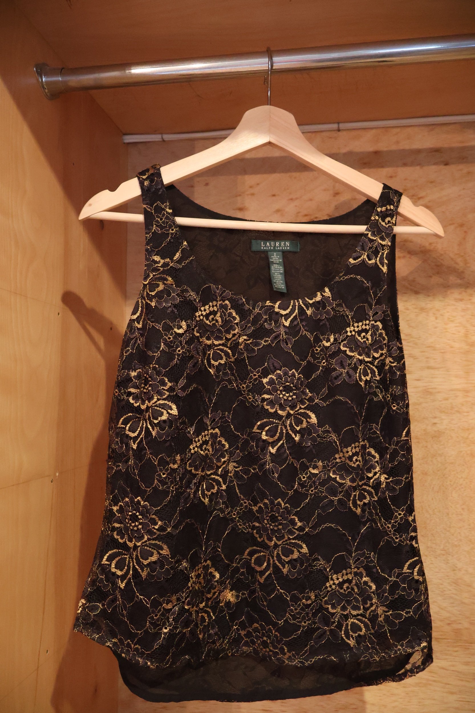 Black and Gold Lace Floral Embroidered Sleeveless Blouse Size 2 by Ralph Lauren