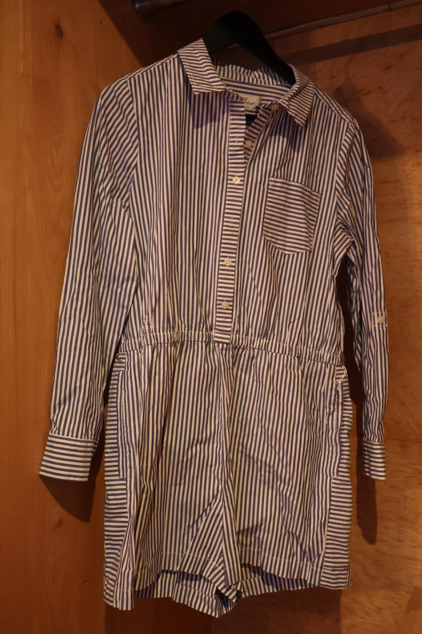 Blue & White Striped Long Sleeved Short Romper Size 10 by vineyard vines is the perfect preppie one-piece with pockets. Breakfast at the resort, lunch at the slip, traipsing to the Trevi, this piece is ready for whatever you have planned. Little to no signs of wear. Delivered for free to NYC and shipped nationwide.