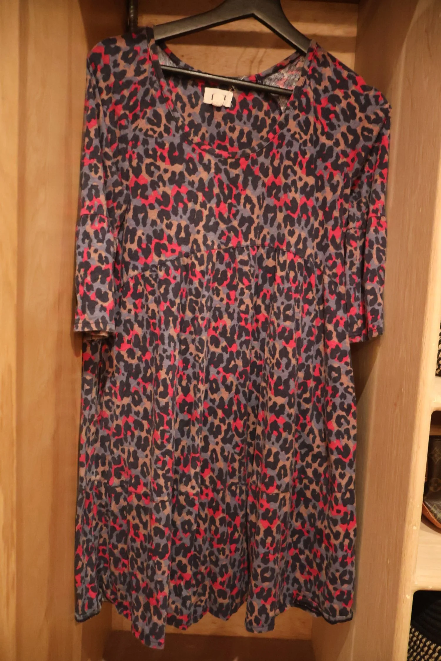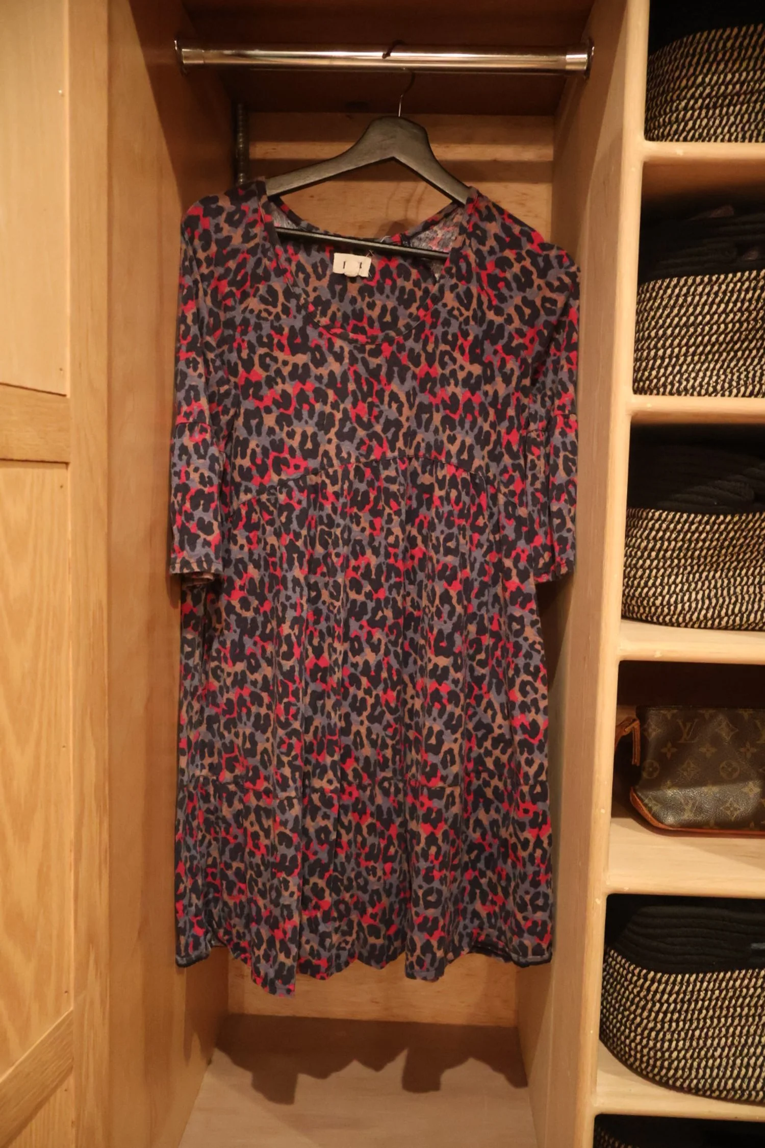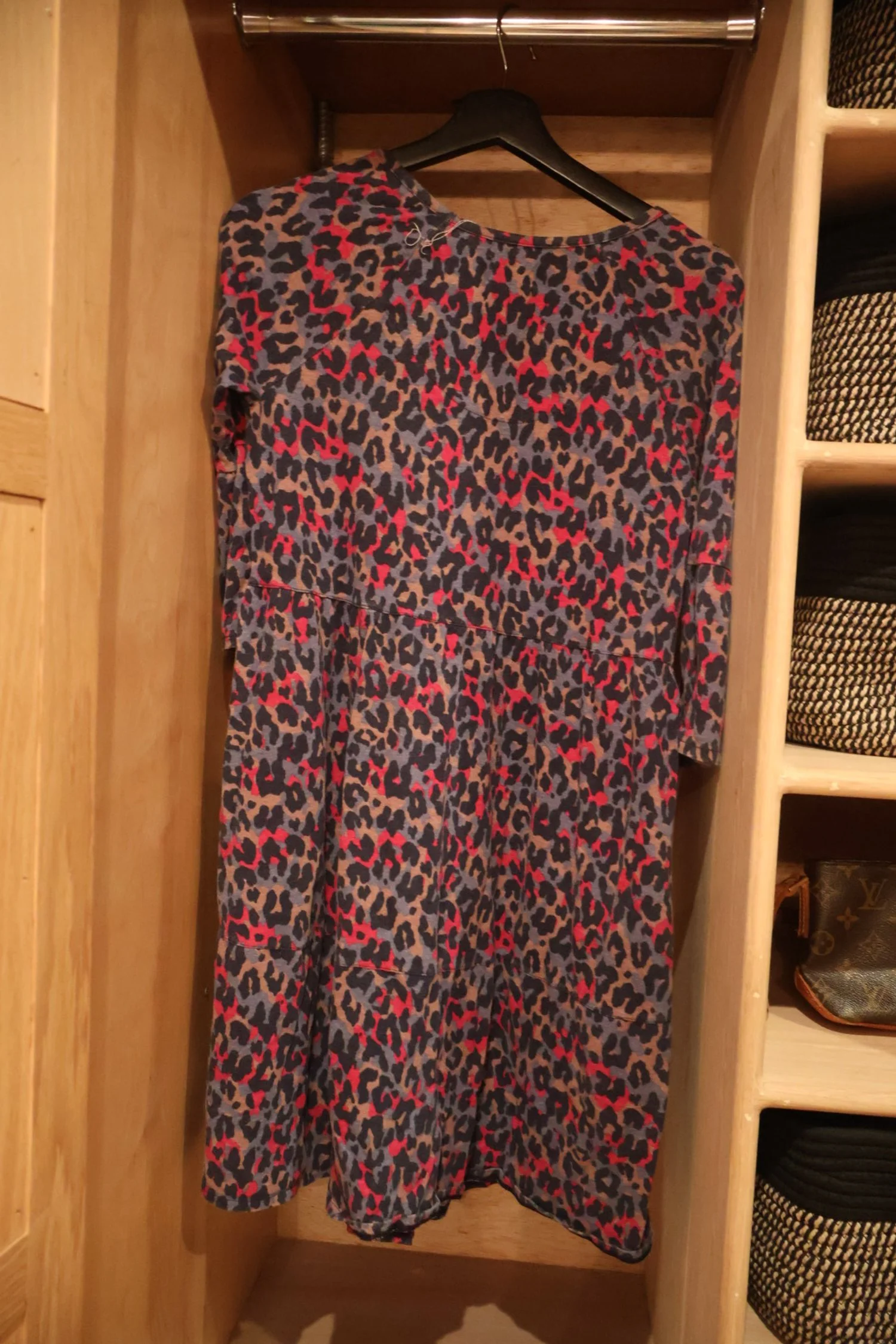 Hot pink, navy blue and warm browns all blend beautifully in this organic cotton shirt dress by Pact in size small. Perfect for layering over jeans for a grunge revival. Delivered locally to NYC and shipped nationwide.