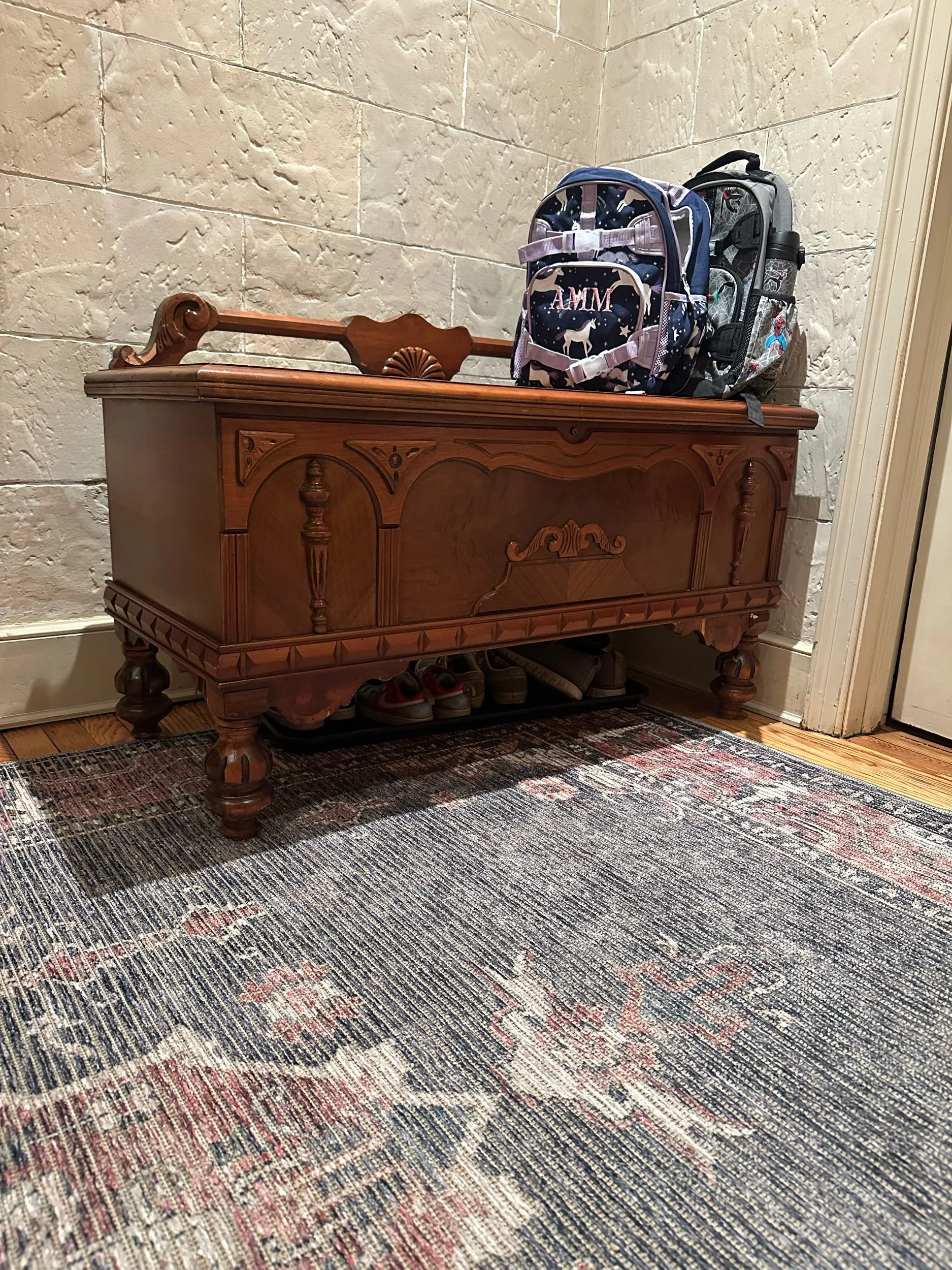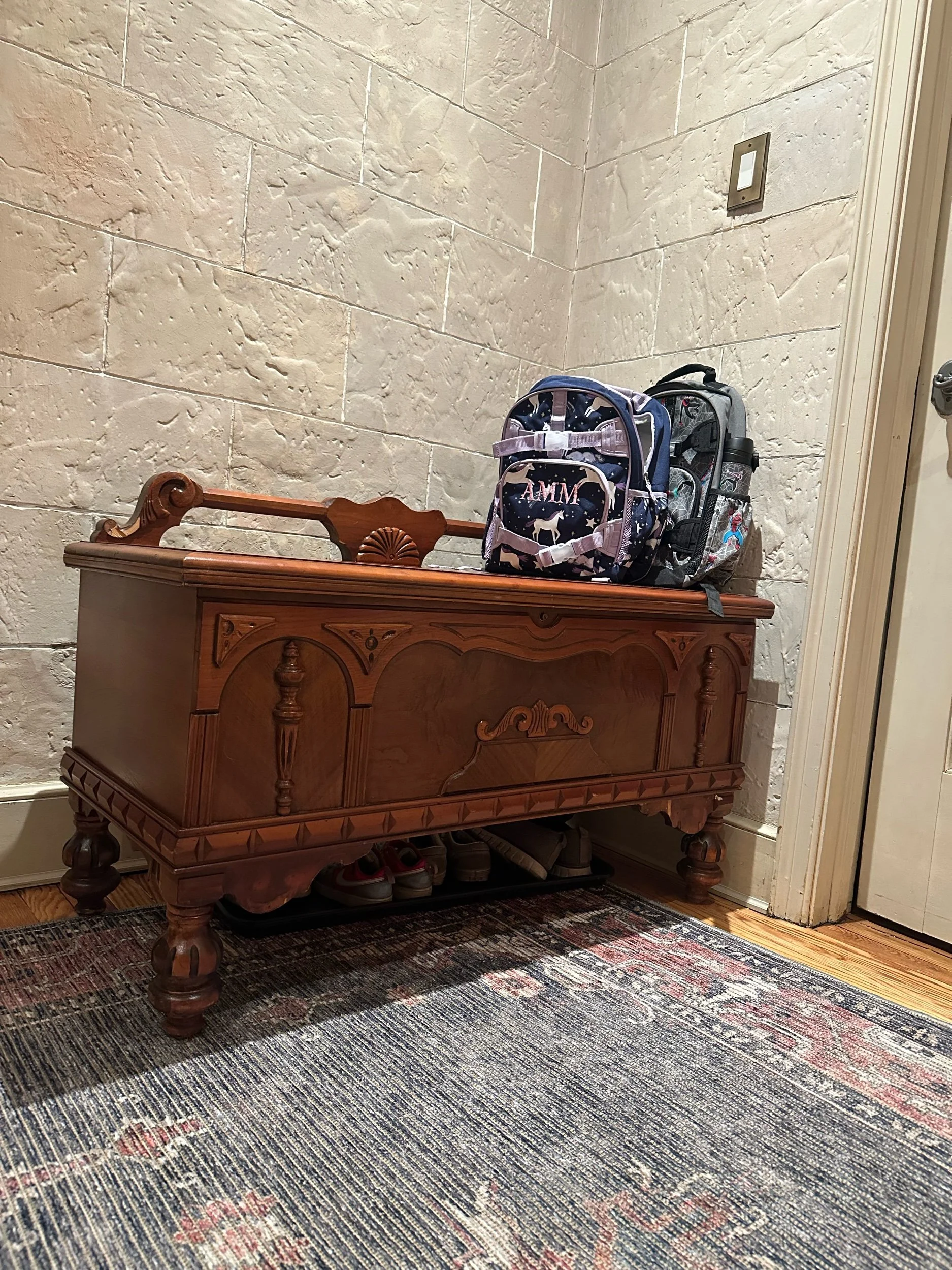 If your hallway entry needs are less drama and more mama, we recommend this adorable bench and storage combo! Keep your people or pet supplies organized and ready for walks without conceding style thanks to the cheeky cushions. 47.5” Length 29.5” Height 16” Depth. Local Delivery to NYC only!