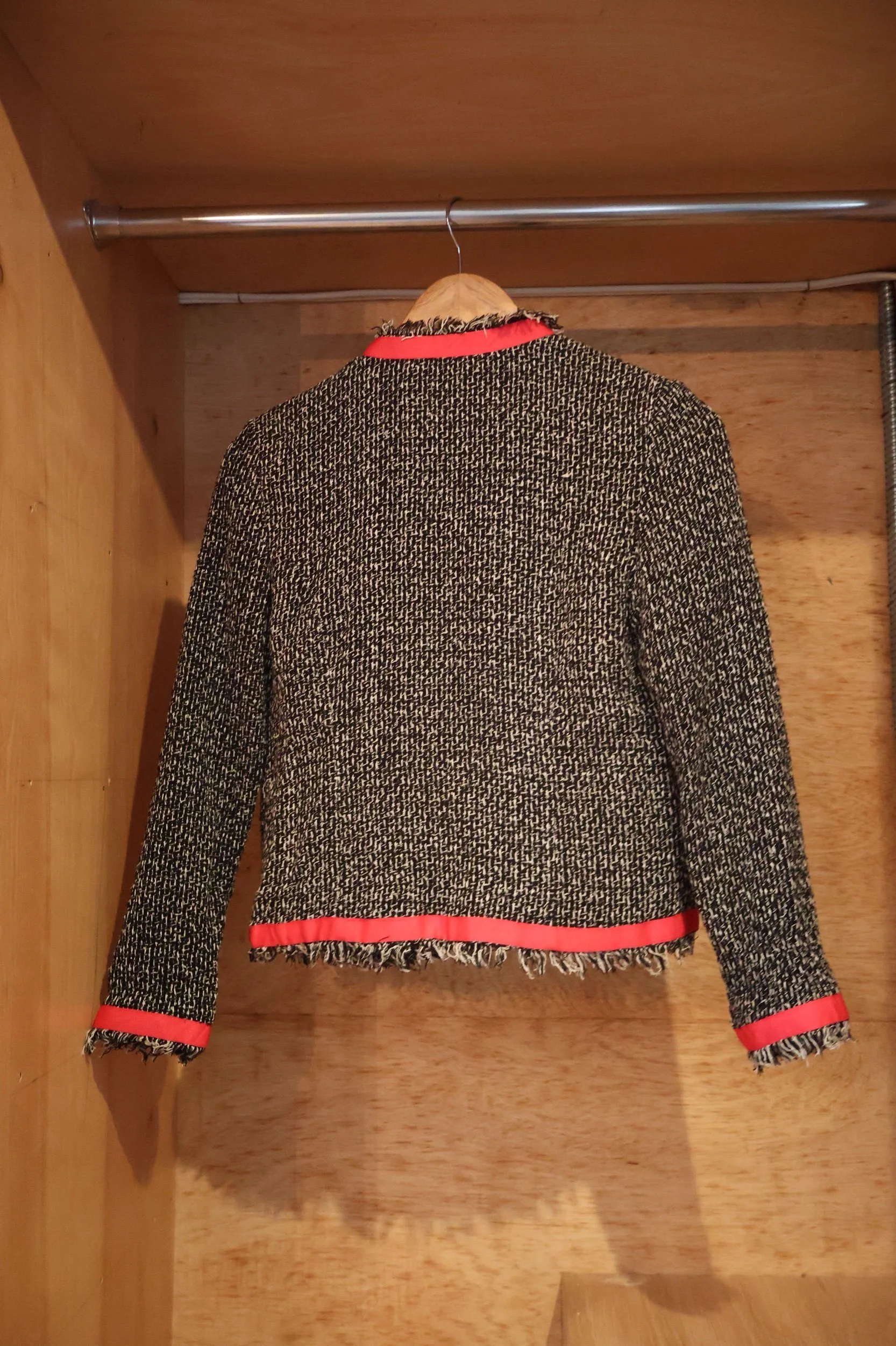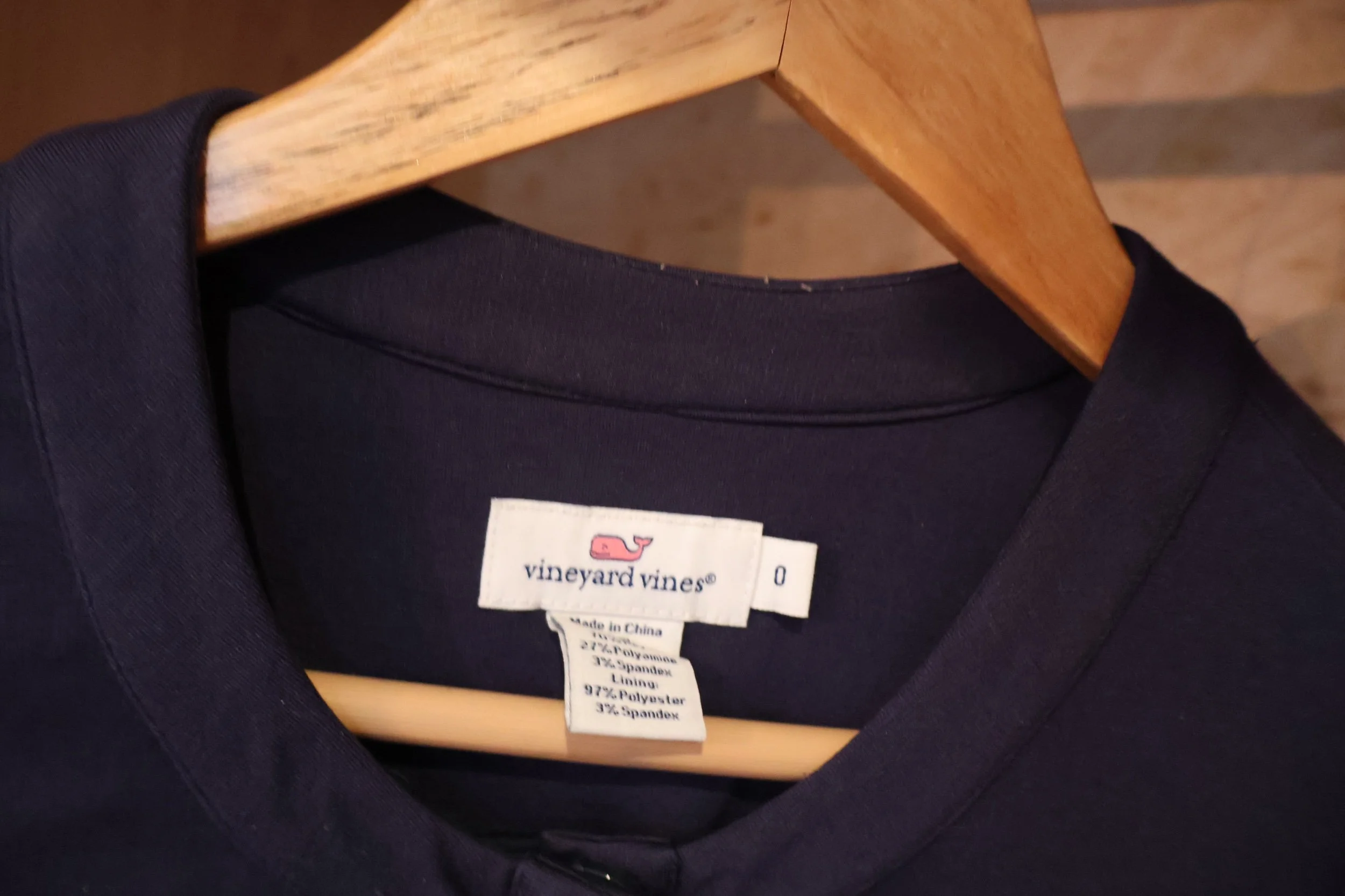 Light peplum flare to this otherwise staid navy soft blazer from Vineyard Vines, available in a size 0. 70% Rayon, 27% Polyamide, and 3% Spandex means she’s a fantastic traveler, super wrinkly resistant, and comfortable to wear while flying if your commute to work involves a plane (or while working from home, she’s nap ready). Very little to no signs of wear. Delivered locally to NYC or shipped nationwide.