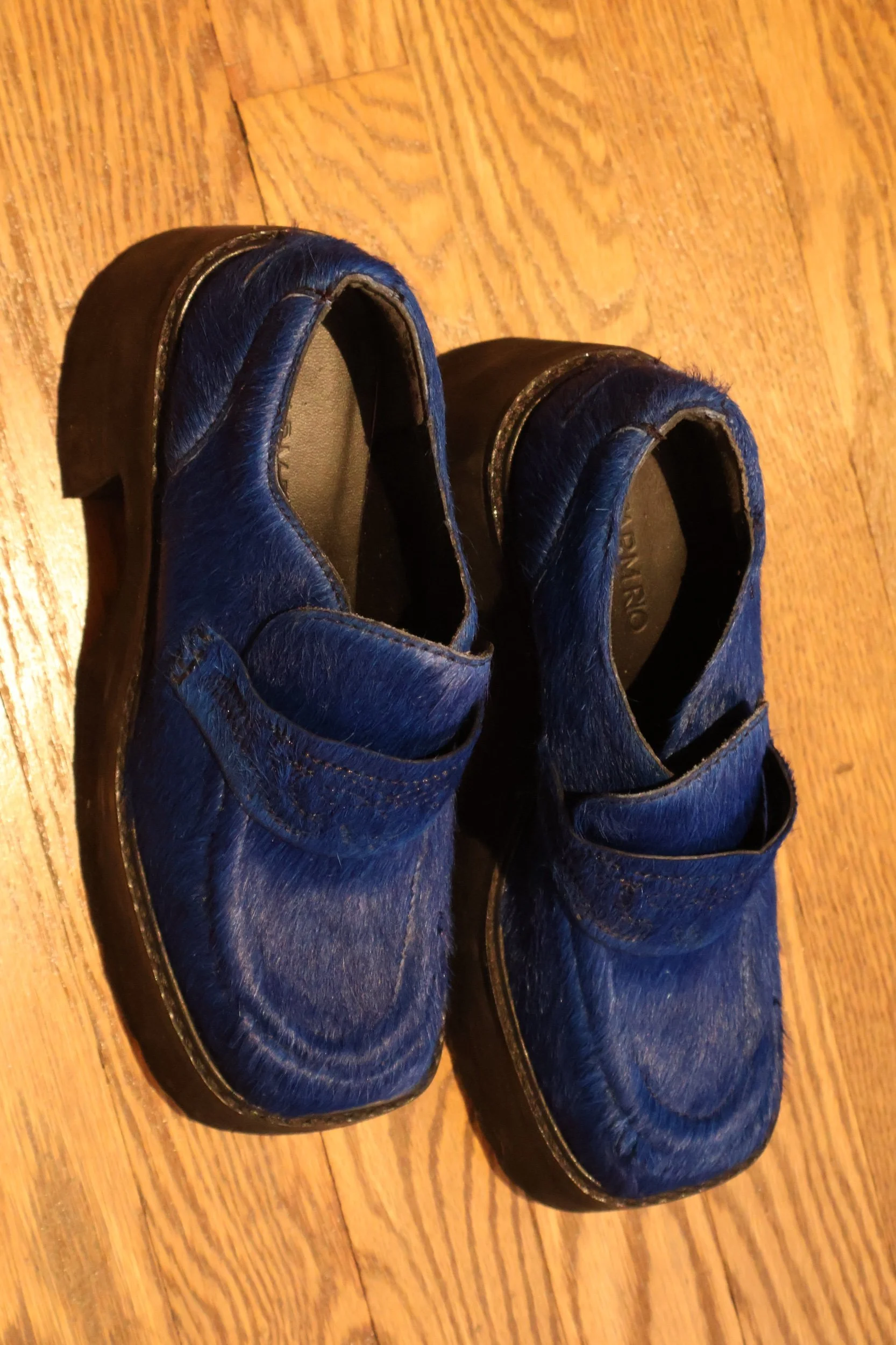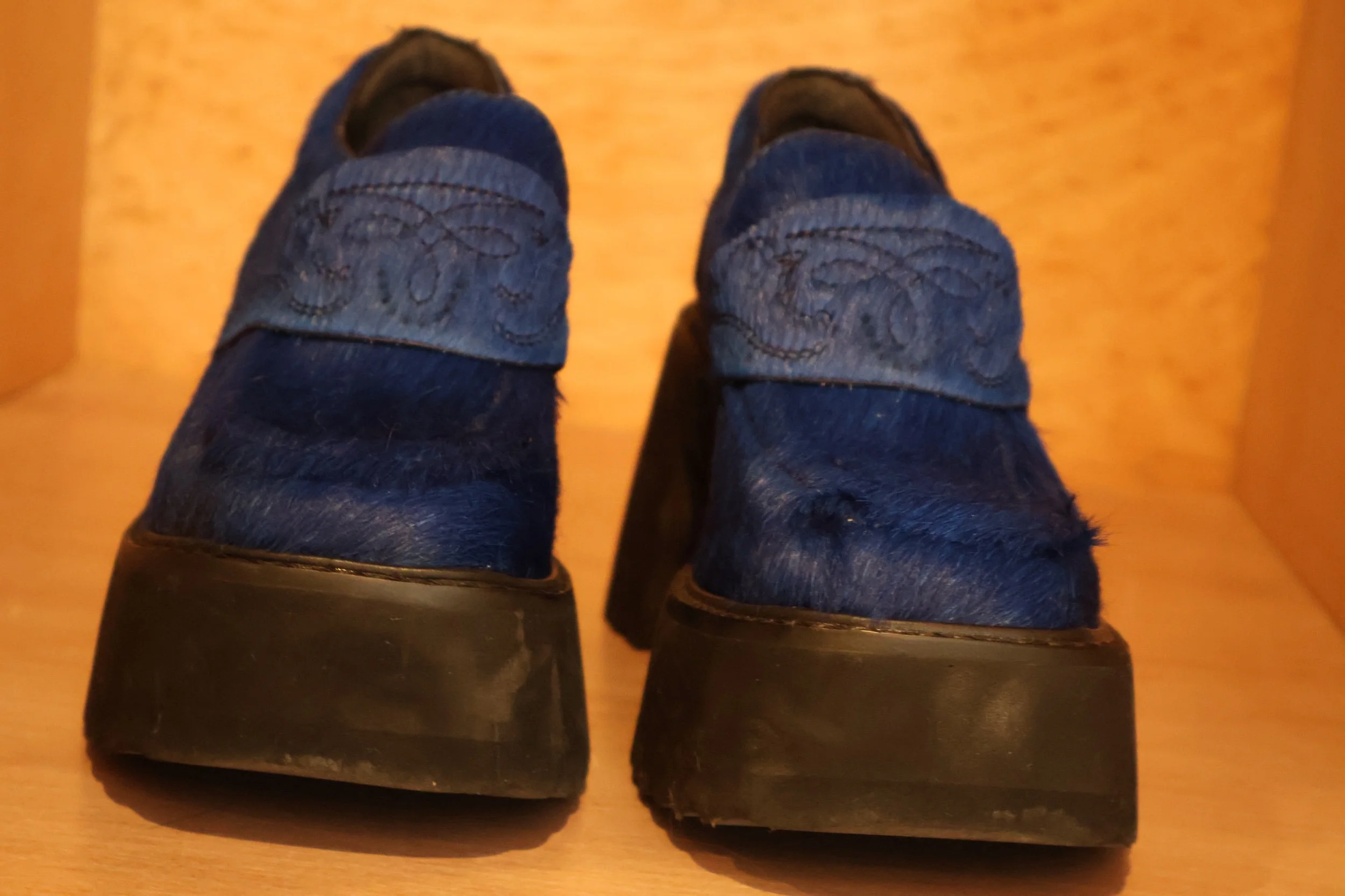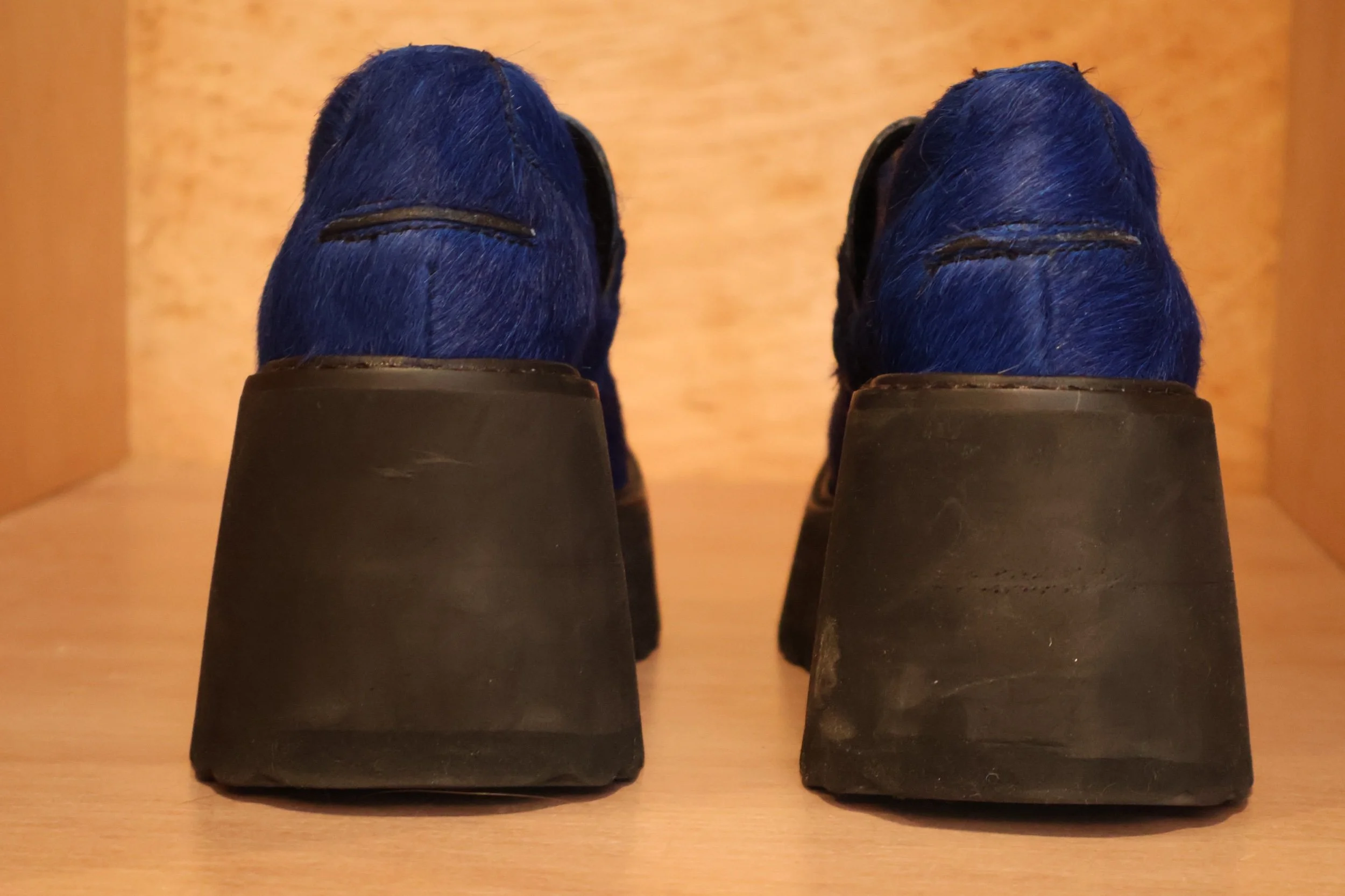 Blue horsehair platform mules size 6