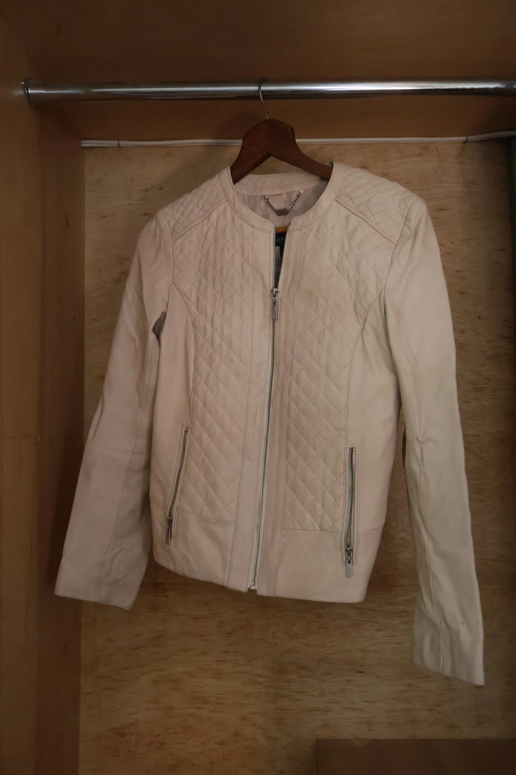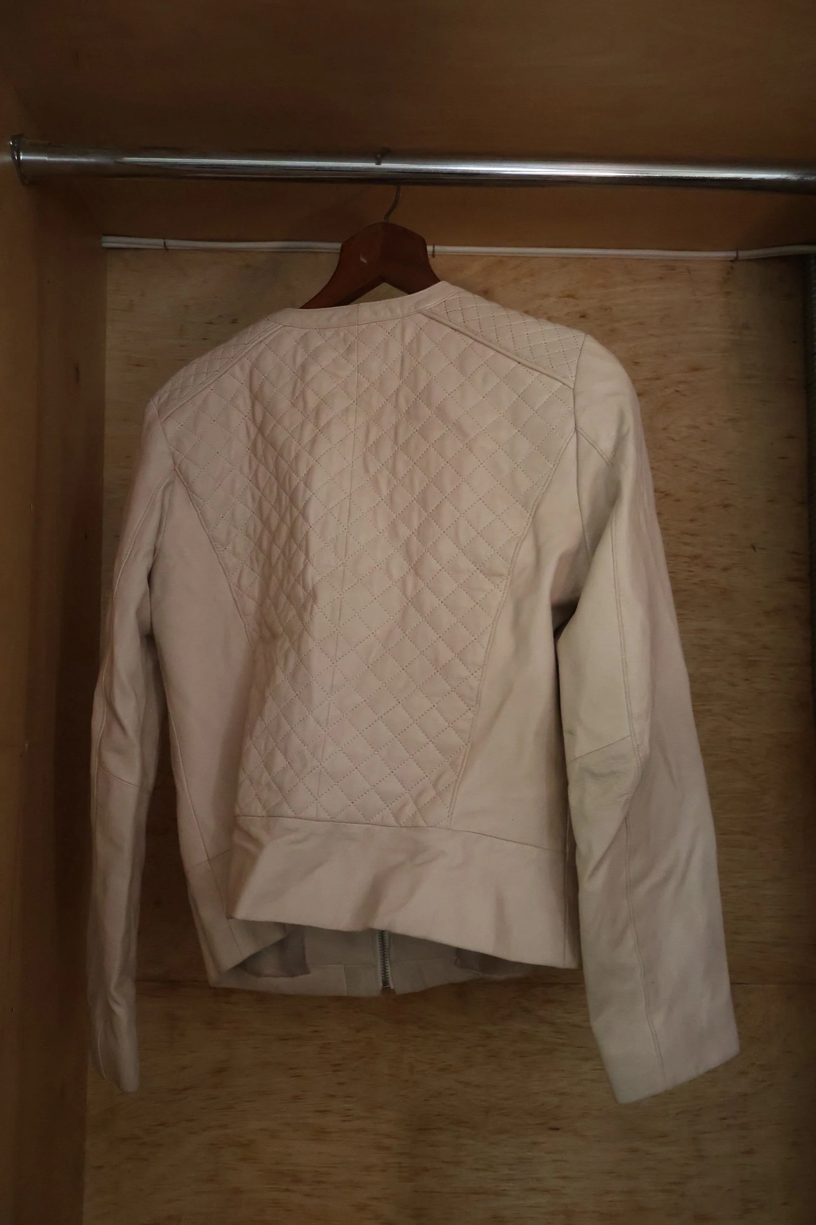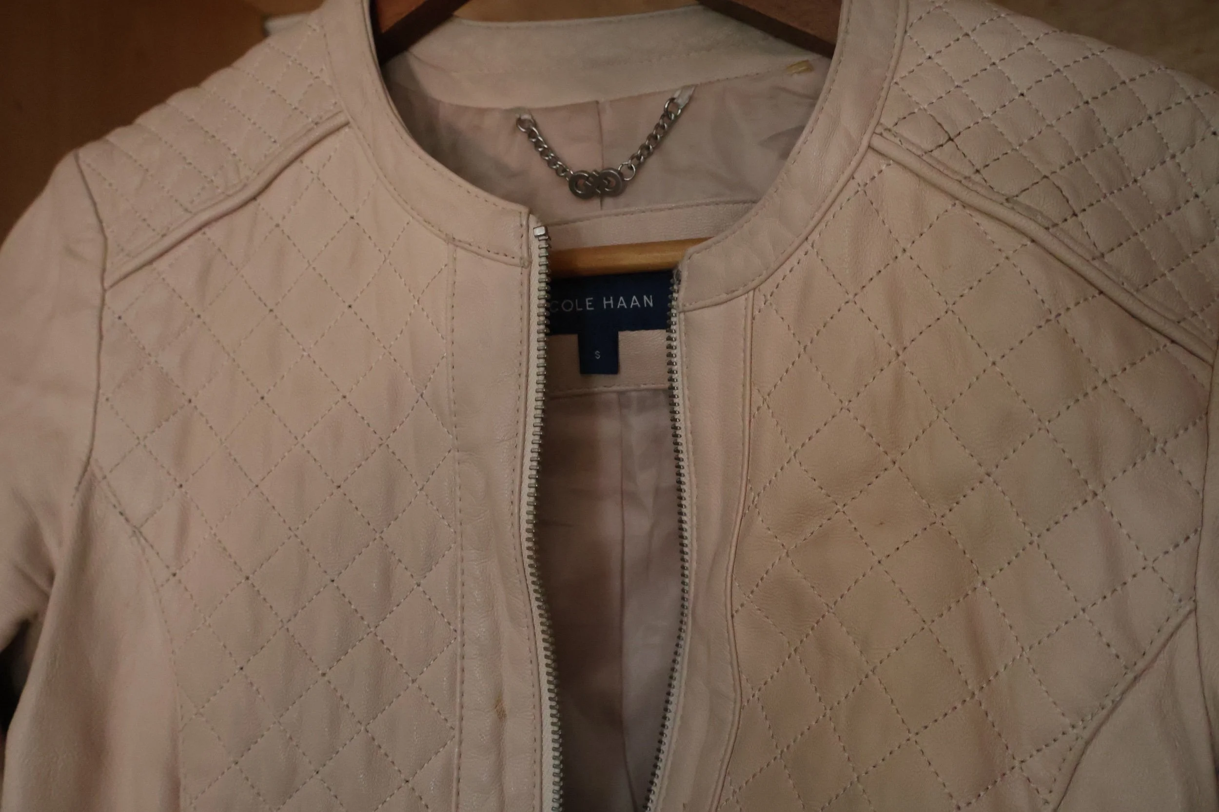 Light pink size small leather motorcycle jacket by Cole Hahn