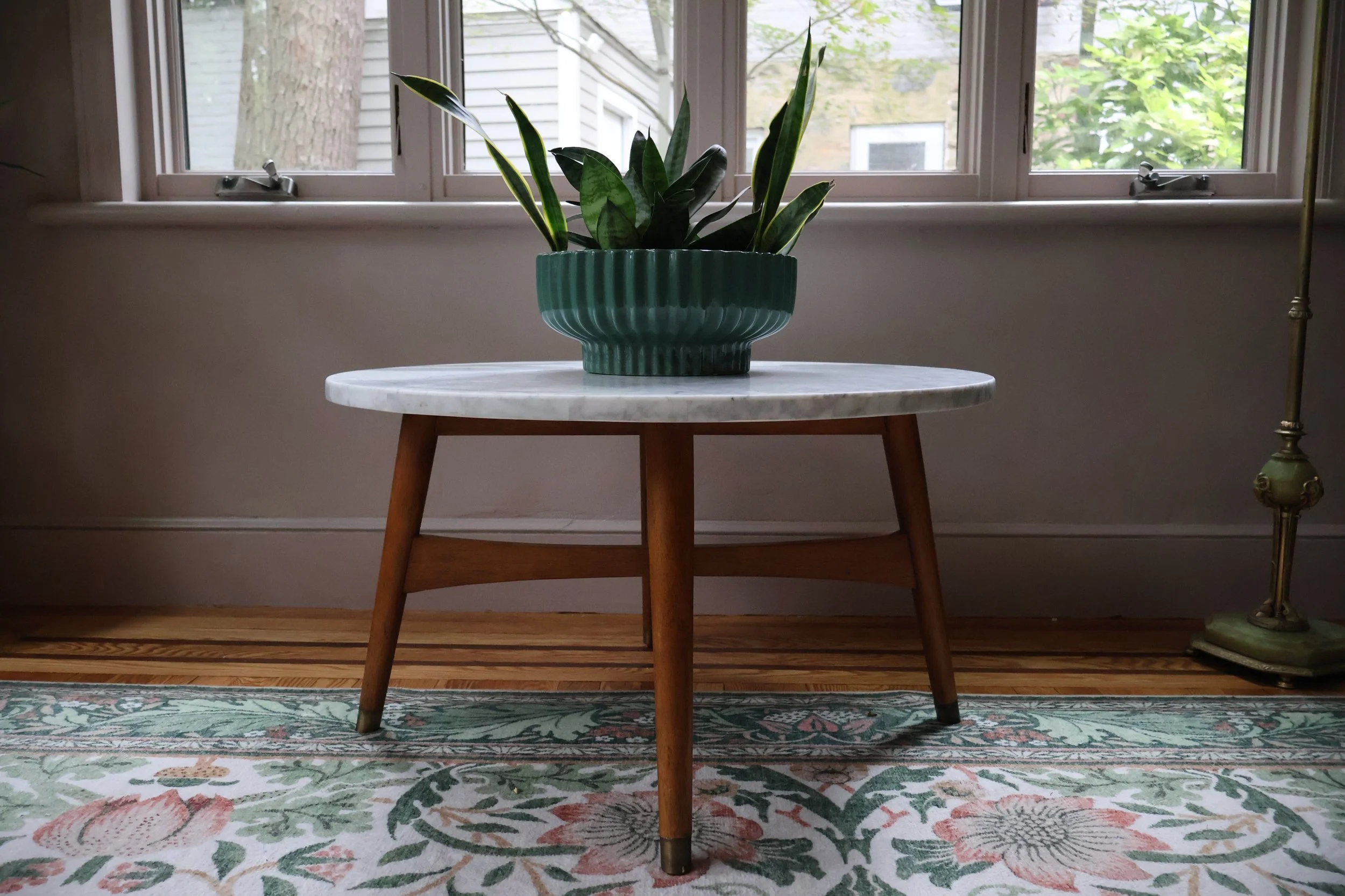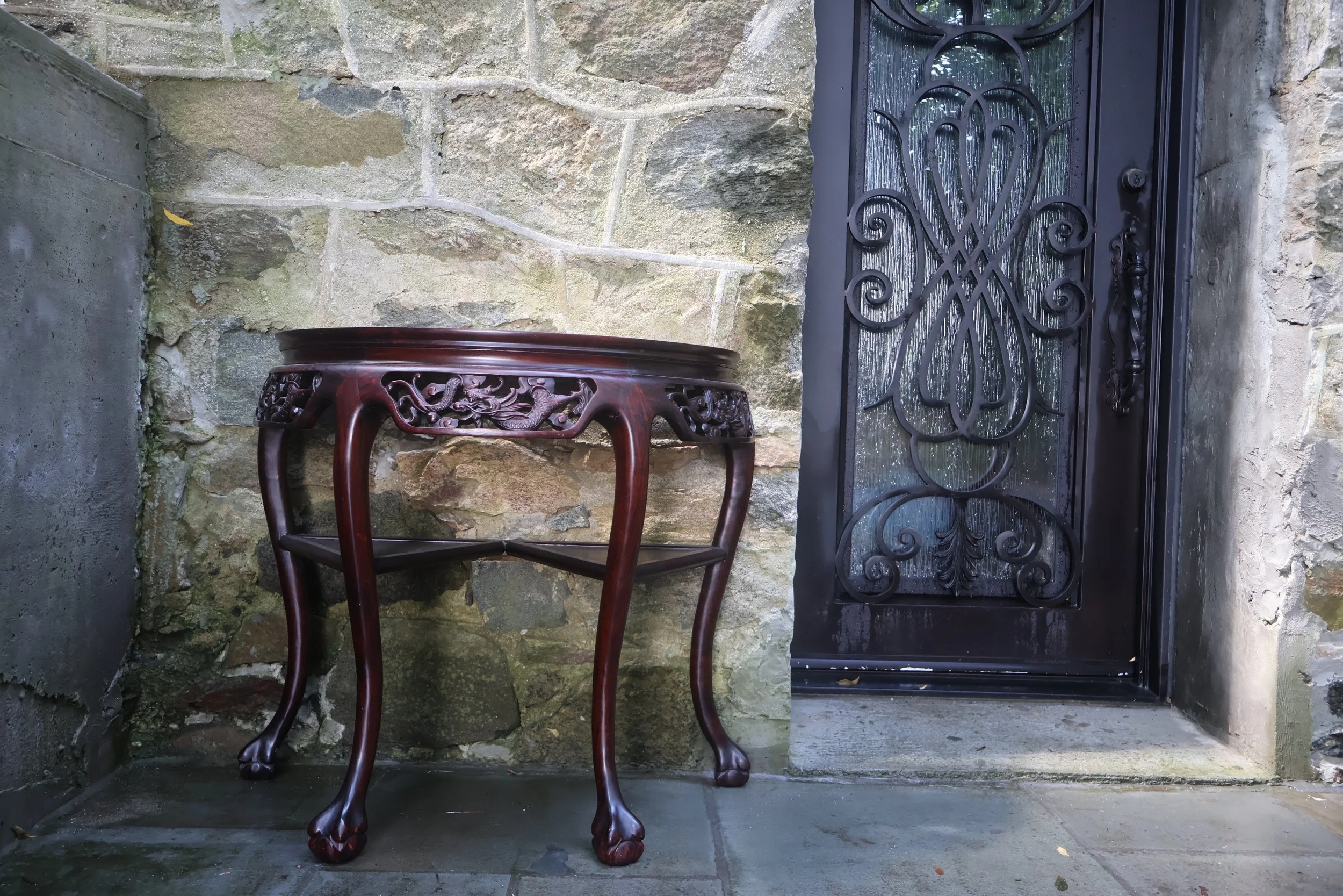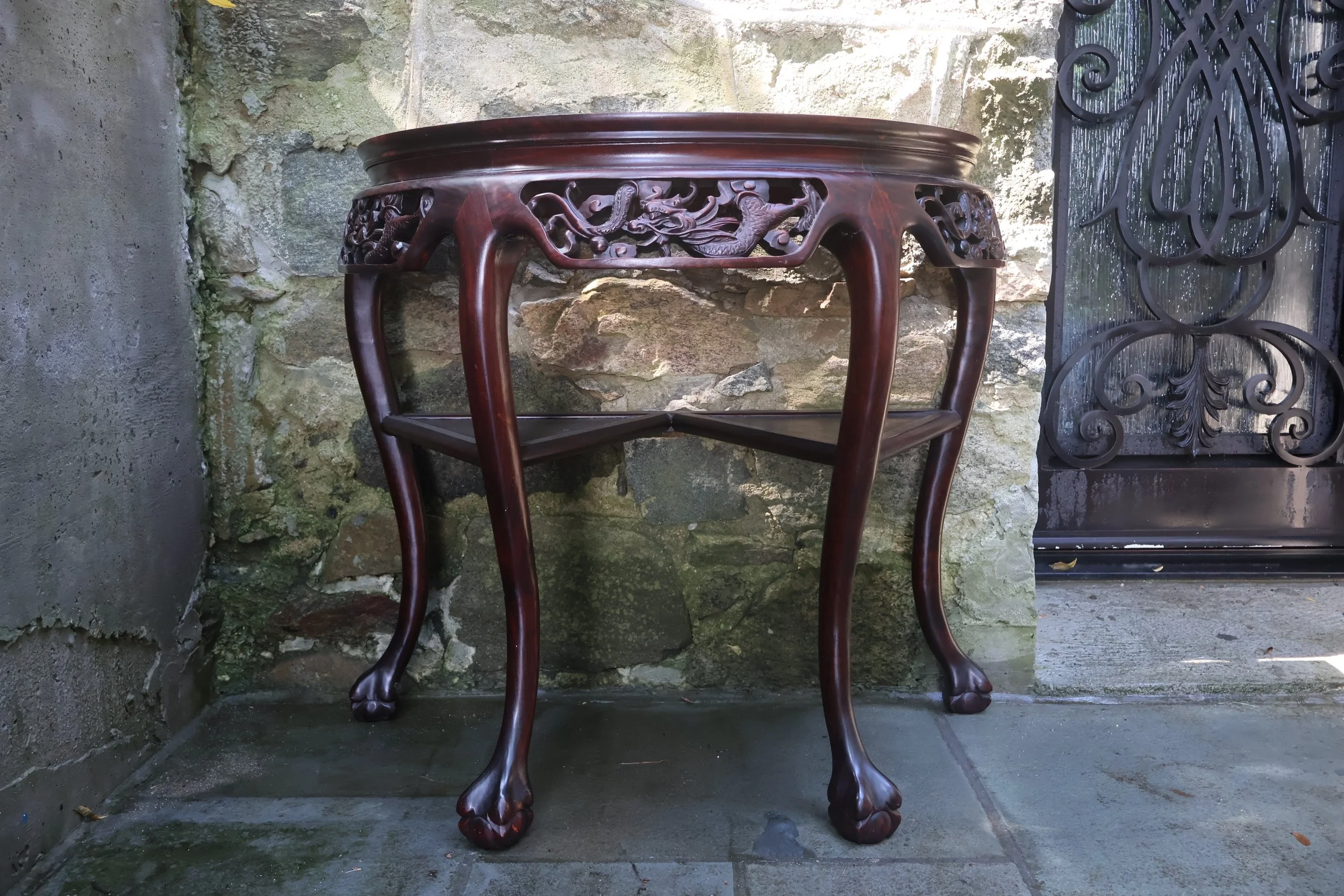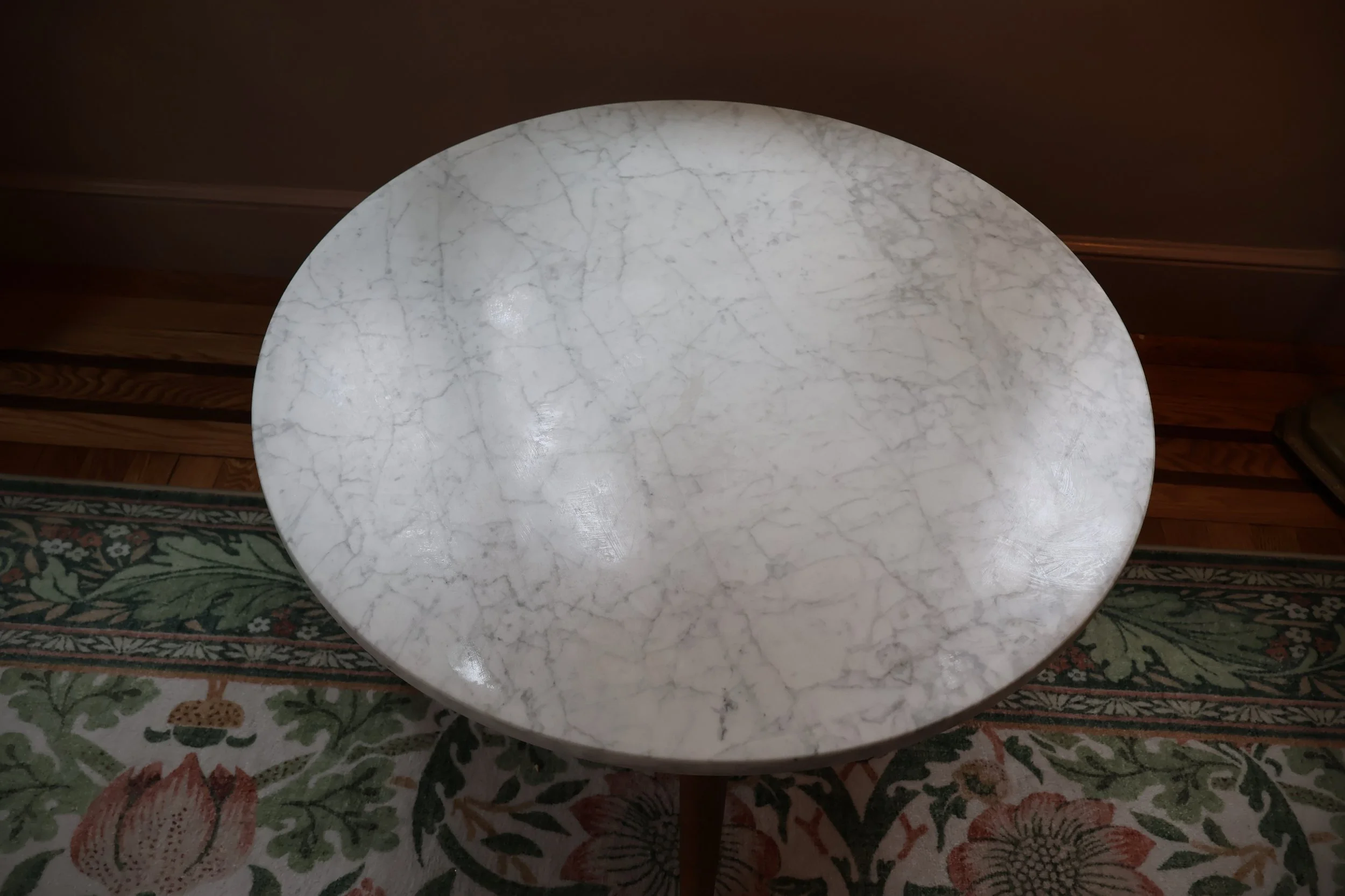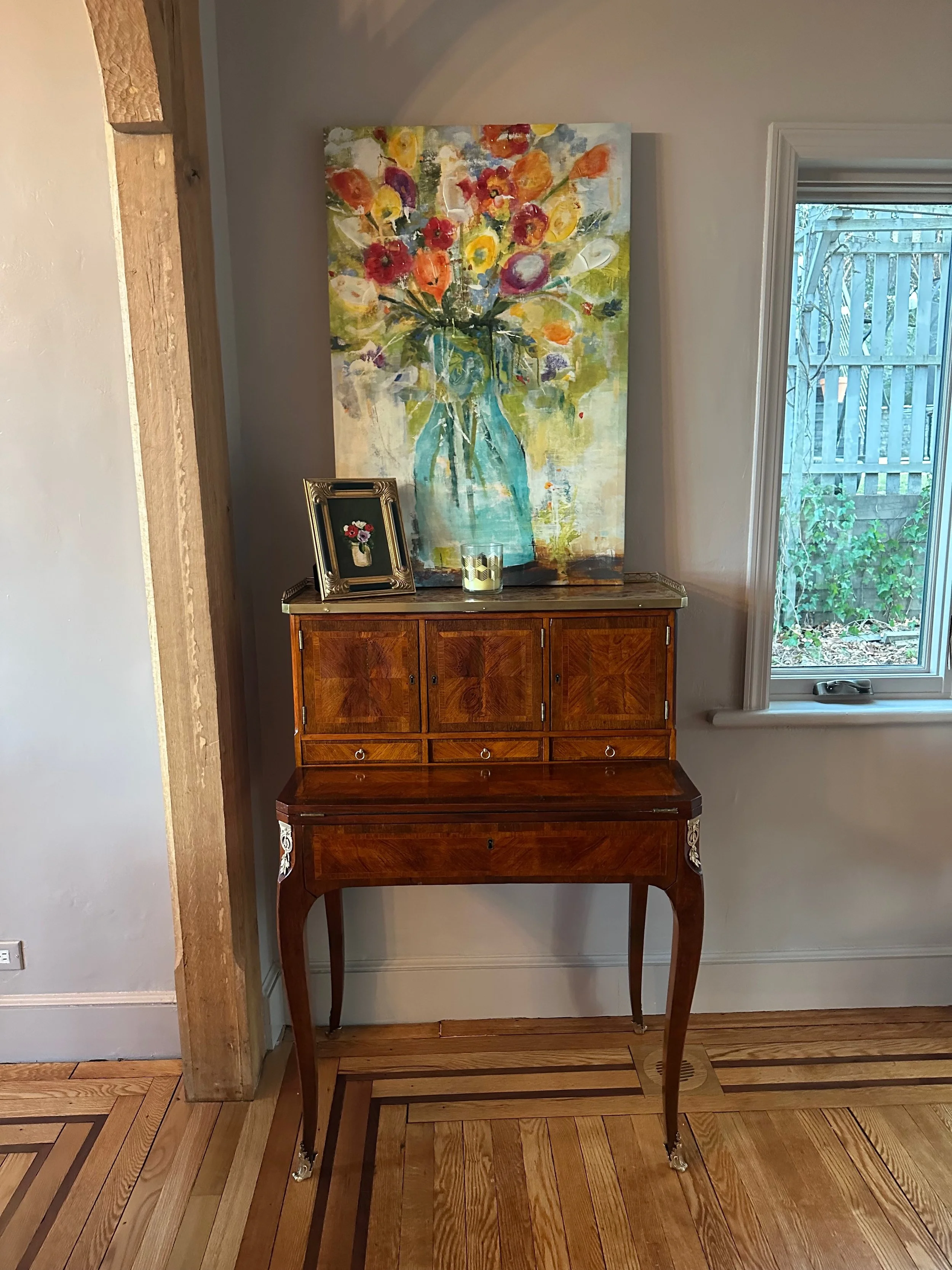 Pristine French style side table with cabriole legs, carved details, and a small drawer, ideal for accompanying an easy chair or as a delightful bedside table. Will only deliver with love and care to NYC.