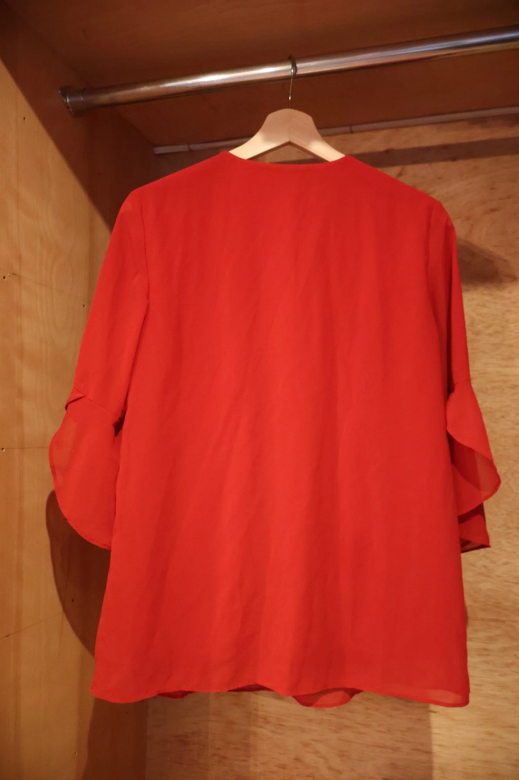 Time capsule top from 00s Calvin Klein, burnt orange, bell sleeves, flowy body; looks amazing with a layered belt of course. Size small and runs a bit short if loose. Available for local NYC delivery or nationwide shipping.