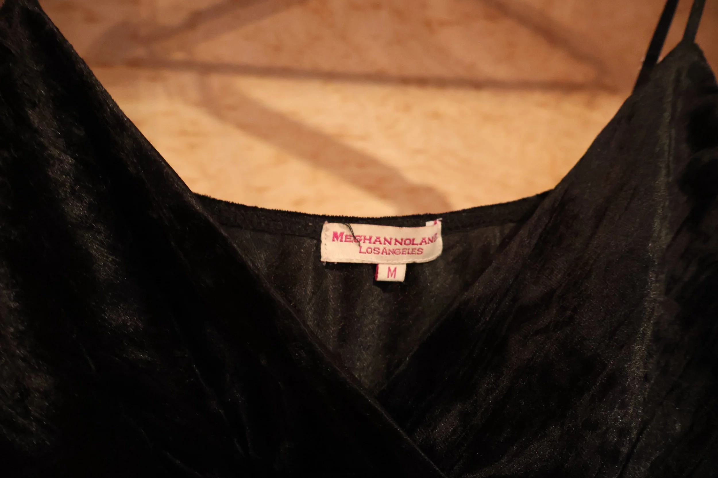 Vintage 00s Going Out Top in Crushed Velvet with Spaghetti Straps Size Medium in Black