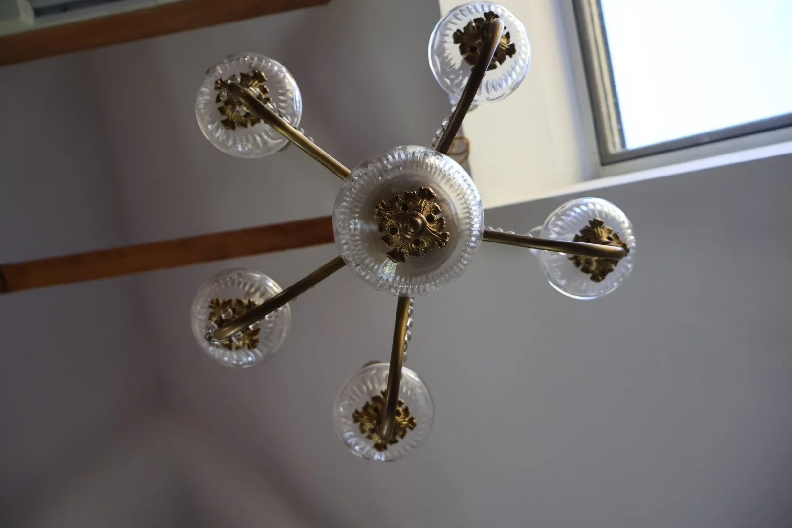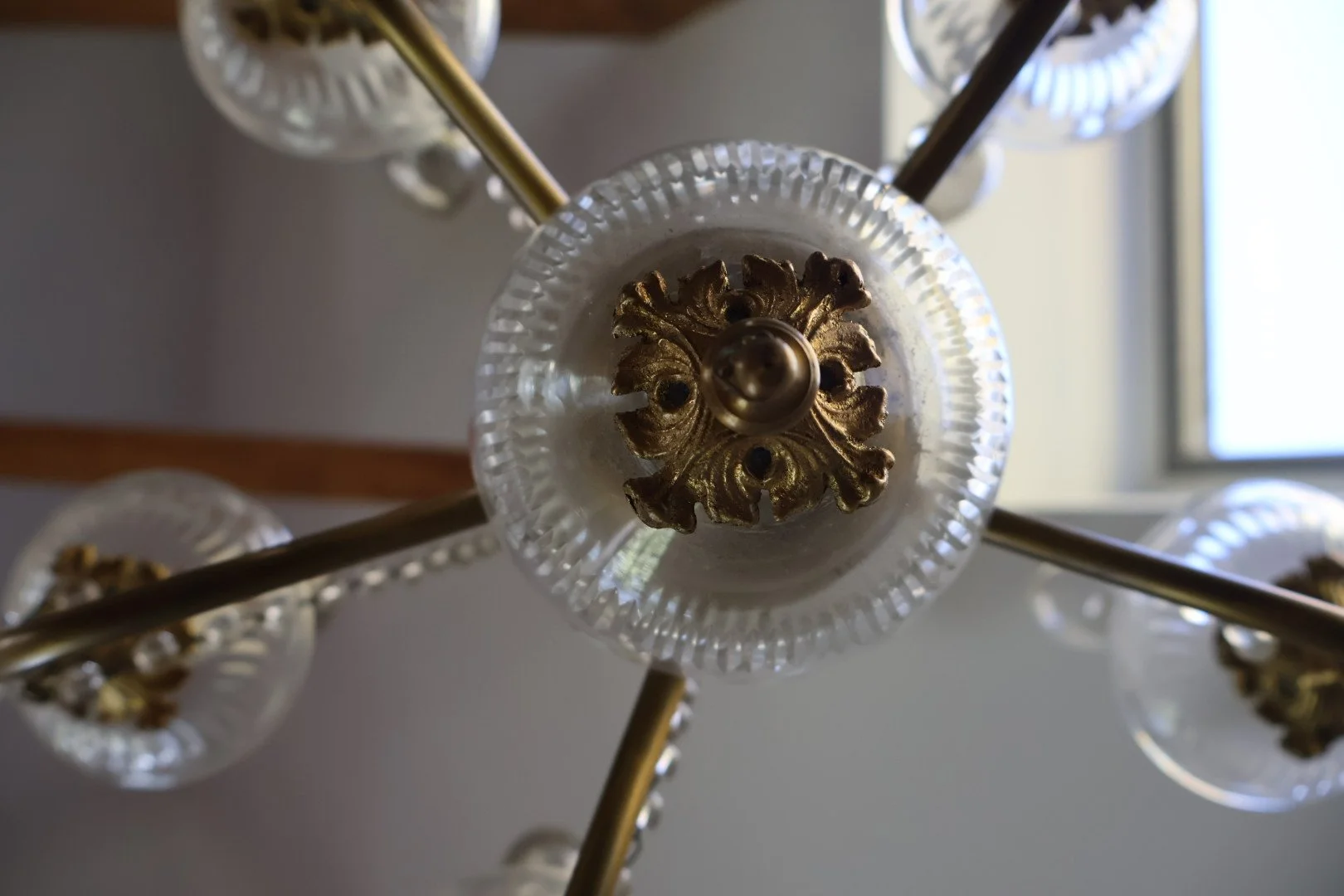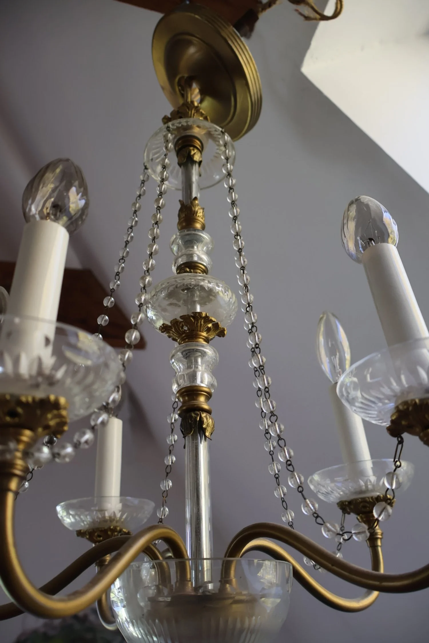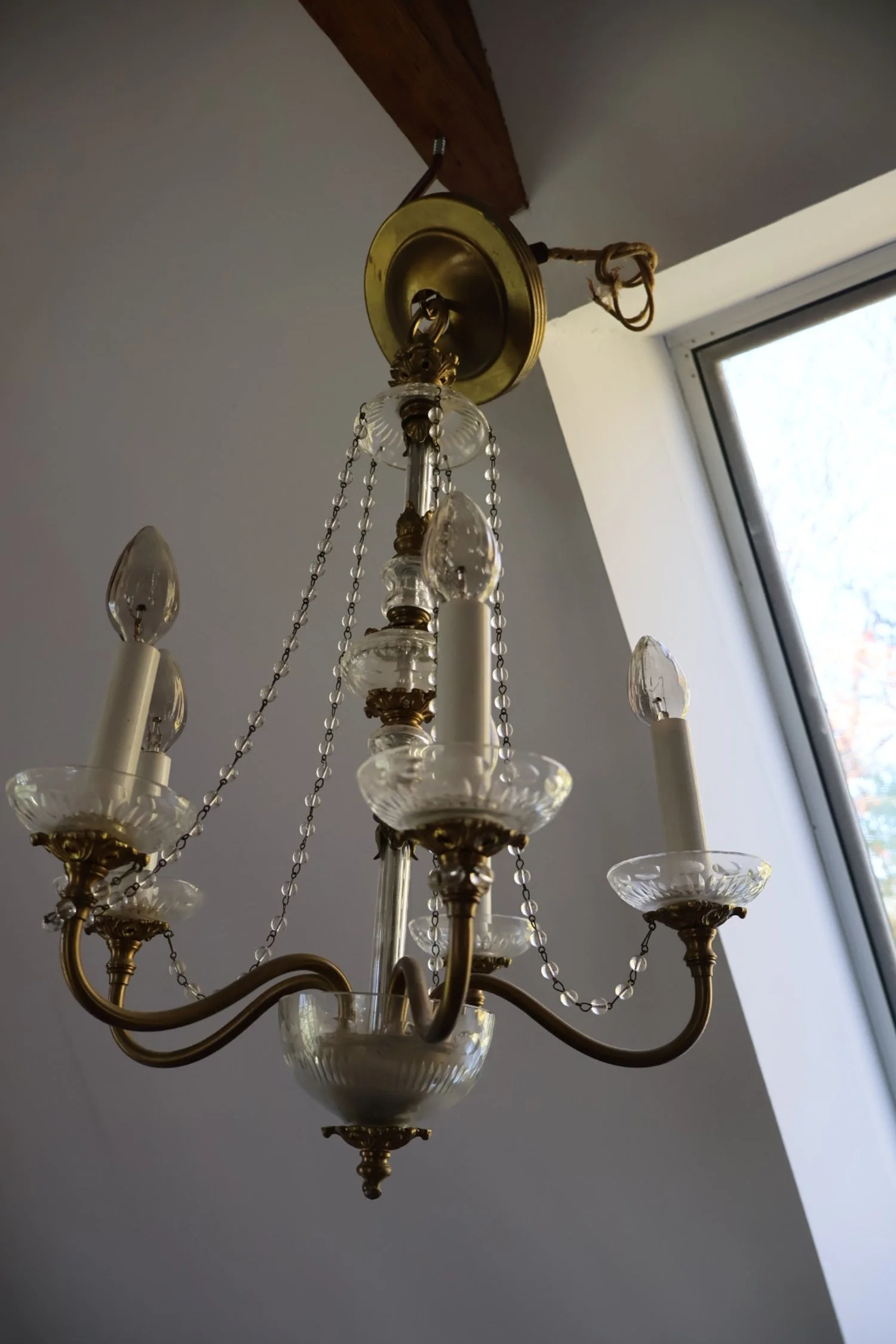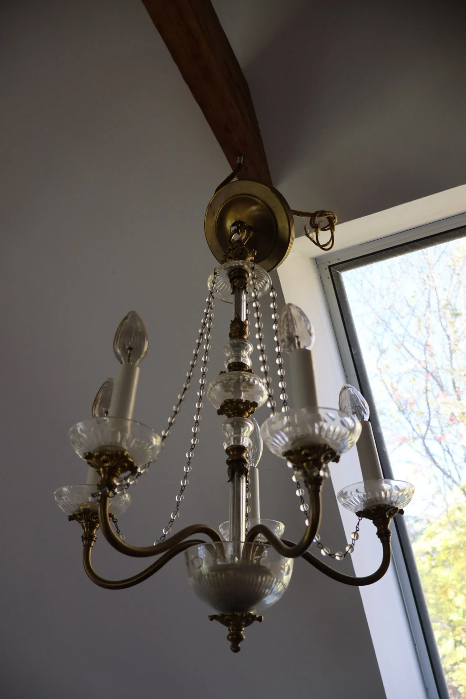 Vintage 19th Century French Brass and Glass Petite Chandelier