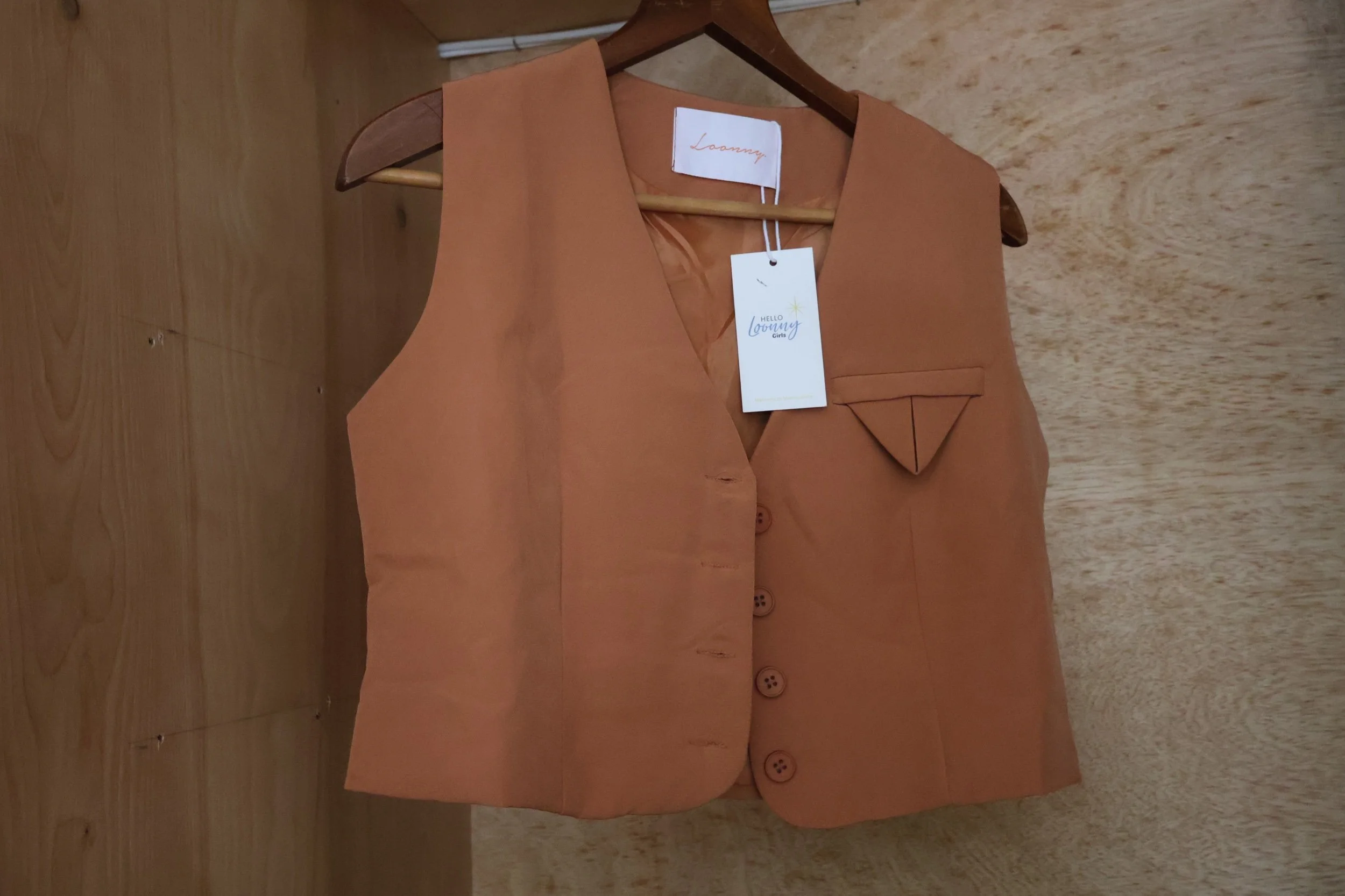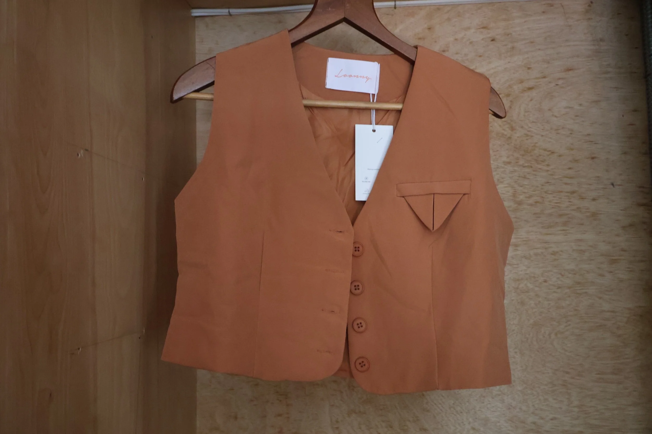 Brown button down vest by Loonny, tags still on and waiting to adorn the cutest fall fits. Size small could flex up a bit! Delivered locally to NYC and shipped nationwide.