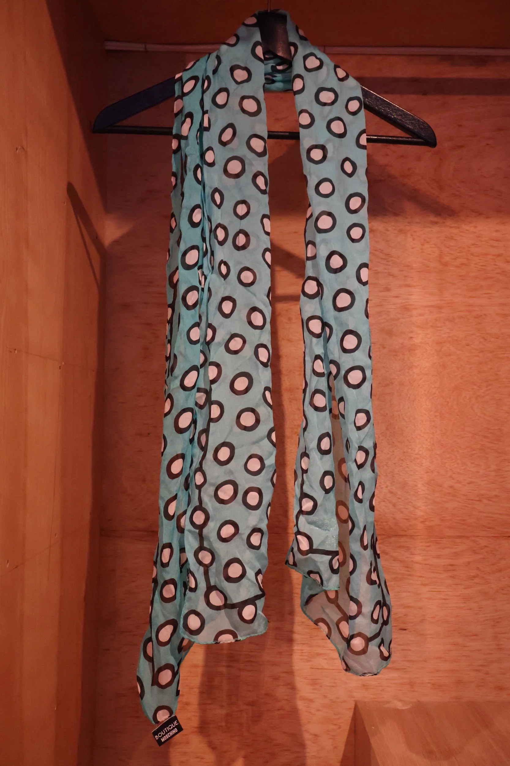 Yellow, White, Blue, Black & Grey silk scarf by Pollini in pristine condition, no visible wear. Yellow continues to trend this Spring ‘26, and this versatile scarf can liven up any outfit as a belt, top, scarf, headscarf, etc. Delivered for free to NYC and shipped nationwide.